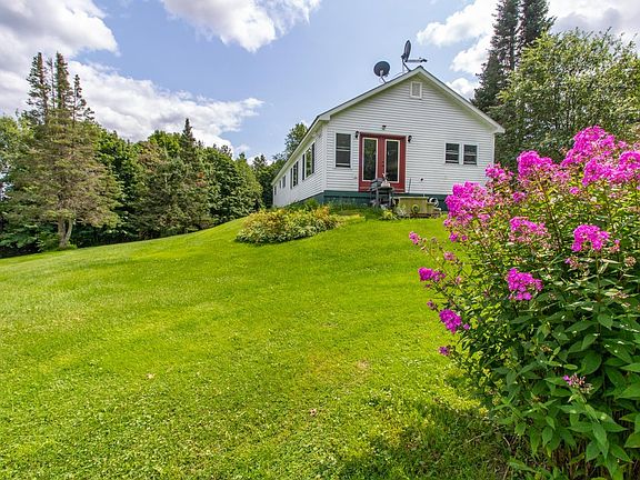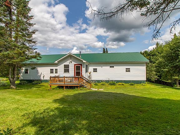 Gently rolling hills and lush expanses of grass bordered by trees–this is a truly spectacular spot! During the day, you’ll hear the sounds of birdsong and buzzing as bees flit from flower to flower in the perennial beds. At night, the sky is a canvas of twinkling lights, and you can lie in the grass identifying constellations and searching for shooting stars. Located on the Canadian border, this 10.7-acre property would be ideal for a small farmstead, with sheep roaming in the fields, or simply as a tranquil place to retreat at the end of the workday. The 20x70’ home started life as a 1968 mobile home, but the addition has transformed it into a 1,500-sq-ft home that offers an open floor plan in the main living area with picture windows framing the gorgeous views. The 2 original bedrooms still have the original built-in storage, and one has been transformed into an office space. Between them is the original full bath with a stacked washer/dryer. Steps away is the newly built main bedroom and ¾ bath with oversized shower. Another new bedroom is up the hall. A cozy entry/mudroom addition leads out to a deck ideal for relaxing, quiet evenings. When you want to invite ALL your friends and family over for a cookout or celebration, the outdoor kitchen and pavilion provides the perfect spot for grilling, eating, even dancing, or use it to store an RV and lawn/garden equipment. Come put your finishing touches on this home and discover the joy of living surrounded by nature.