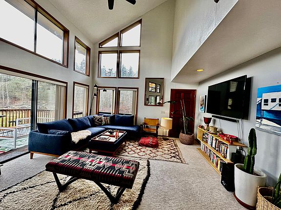 Very private newly remodeled interior just a 5 min walk from the bars and restaurants of downtown White Salmon. Gorgeous great room with vaulted windows and all glass dining room. New kitchen with stainless fridge, dishwasher, range, microwave and commercial sink. Three bedrooms with two remodeled bathrooms. Surrounded by hundreds of acres of premier gorge hiking and biking just 50 feet from your front door! Bright Updated and Very Private 3 bedroom, 2 bathroom home 2 blocks from the bars & restaurants of White Salmon. Amenities included: Gorgeous living room with vaulted ceilings and all glass sunroom/dining room, new kitchen with stainless dishwasher, fridge, stove & microwave, 2 new bathrooms, washer dryer hook up, new central air, central heat, expansive decks, yard surrounded by 9 acres of complete privacy, 5 min walk to downtown White Salmon, right on Jewett Creek and surrounded by 100s of acres of hiking and biking trails all starting 50 feet from your front door. Utilities paid by tenant include: high speed internet/cable, garbage, water/sewer & electricity. Is pet friendly with deposit. Date Available: May 1, 2025. $3500/mo unfurnished. Interior photos show current tenant furnishings which are not included in rental.