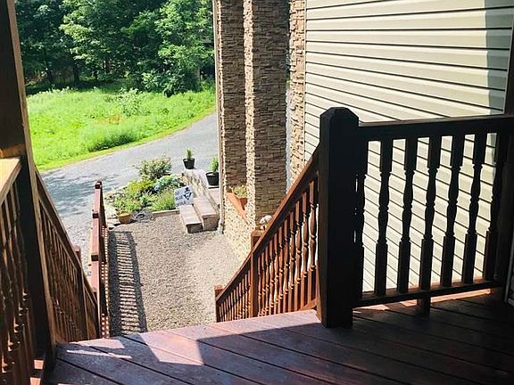 Master builders own home, unique design/style contemporary built on a hill side with privacy on 7.17 acres. Beautiful cultured stone front and columns. Graveled pathway leads to covered front porch. Large workshop near the foot of the driveway with electric and 12 ft ceilings. 26x26 machine shed, kennels built on pad with electric and water, chicken coop, 900 sq ft of fenced garden area. Large oval above ground pool, play equipment. Level lawn for great summer fun. The incredible house has a workout/gym area, a private guest area, full bath, large utility room in lower level. Kitchen w/ white oak floors, hickory cabinets, granite counters, ss appliances, dinning area, huge living room w/ floor to ceiling stone double flue chimney for woodstove, and the pellet stove on the lower level, a balcony over looks the room with 24 ft high ceiling, laundry, 1/2 bath, office space, family room and mud room occupy the 1st level, come see 2nd floor details with 4 bedrooms 2 baths. Don't miss it.