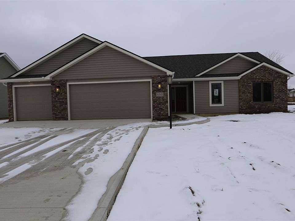 Just completed in Avilla. A ranch home featuring over 1500 Sf with a large 3 car garage. The garage is almost 25' deep. The kitchen has an open layout with island, breakfast bar, custom cabinetry and a double bay nook. The garage has a cathedral ceiling and a corner gas fireplace with brick surround and mantle. The master bedroom offers a large bathroom with a double sink vanity and 5' wide shower. This home has it all!