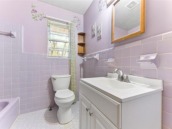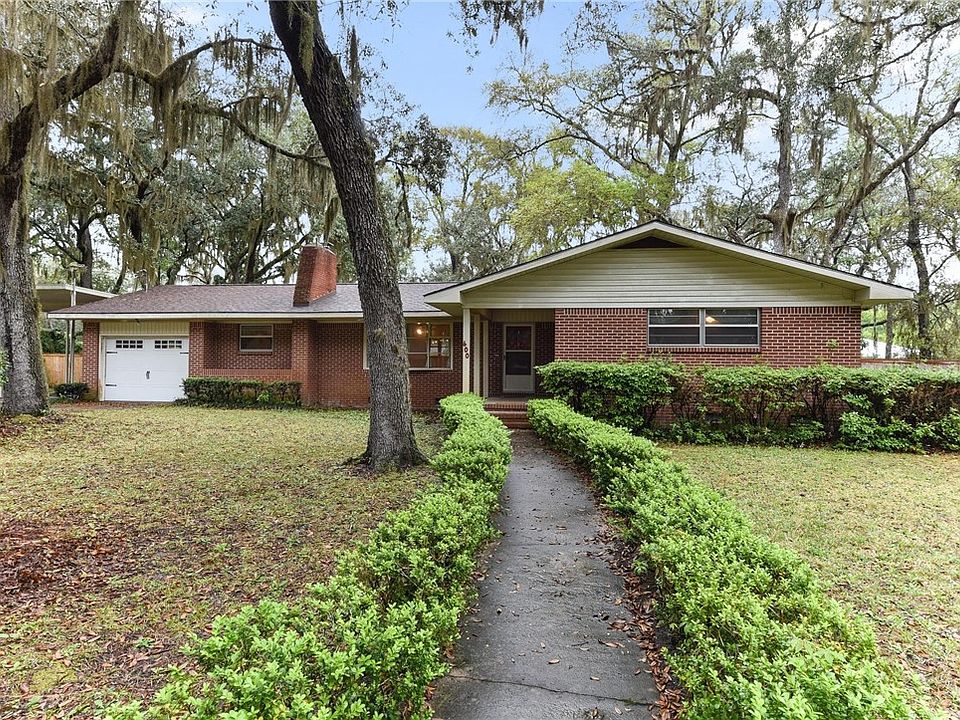 Over 70 years of memories are baked into these walls. The statement "They don't build them like this anymore" couldn't be more true. The classic brick 1960's rancher is set beneath a canopy of oak trees, dripping with Spanish moss, surrounded by mature azaleas and is in the coveted Historic St. Mary's GA golf cart district near the waterfront park, boat ramp, shops and cafes. This is a classic floor plan with hardwood floors, formal living room with brick fireplace (hasn't been used in years but has an electric insert), formal dining room that's just on the other side of the fireplace and conveniently located off the kitchen through a pocket door. The kitchen has those original laminate counter tops with the gold flecks of sparkle (my personal fave), a wall oven and a smooth top stove (yes--it all works!) The cabinets are real wood with antique copper handles and hinges. There's a 1/2 bath in the utility room near the back door that was used by the kids splashing in the pool for summers beyond end. The pool hasn't been used in years-but it's still there and could use a new pump. Inside, off the kitchen is a den with sliding glass doors leading down to the screened patio. The hall way has a built in cabinet and built in clothes hamper as well as a couple of nice deep closets. The bedrooms are spacious-all with hardwood floors. There's a hall-bath with retro purple tile-it's still shiny and fabulous! The master bedroom has a dressing area, I imagine it was Hollywood glam for 1960 St. Mary's and it has a private bath-yes, also with retro tile but this one is pink. The shower in that bedroom is inoperable so some repairs will be required. Although some TLC is needed, this home is well preserved and cared for. The roof is apx 4 1/2 years old. The HVAC and all the duct work was replaced in June of 2021. There's an attached garage with tall ceilings as well as a detached carport/RV cover on the side. The large back yard is surrounded by wood fencing. Easy to show! Call for a private tour.