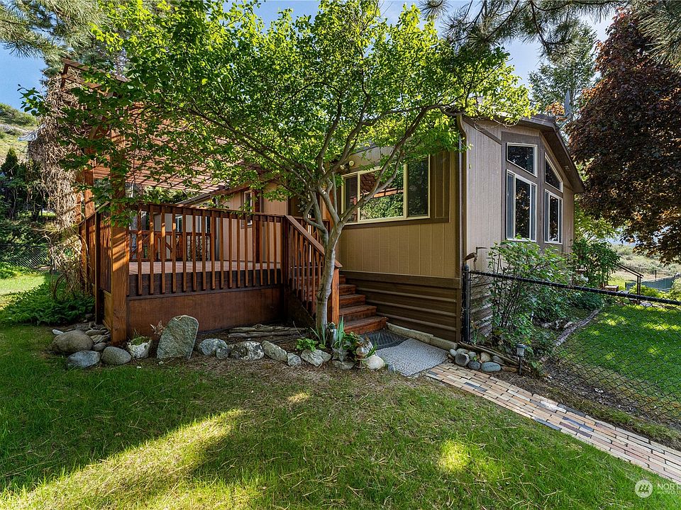 Unobstructed spectacular Columbia River and sunset views from this well maintained double wide manufactured home in the high sought-after Sun Cove / Lake Entiat Estates community. Home sits on a DOUBLE LOT located at the end of the development. This private and quiet 3 bedroom, 1.5 bath home has an updated kitchen with newer cabinets, sink, appliances & tile backsplash. Large mature fully fenced yard w/ covered entry shed. Home boasts 2 big decks for all your relaxation & entertainment needs! Community amenities include a clubhouse, heated pool, basketball court, tennis/pickleball courts, 2 boat launches, 3 marinas, parks, community beach & lots of fun community activities! Only 15 min to Chelan's wine country.