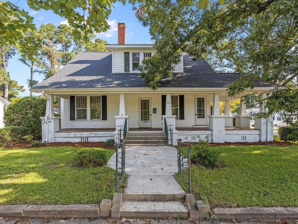 BACK ON MARKET! No fault of home or seller Enjoy this charming 1920's home w/lots of character & unique features Situated on a corner lot & easy walk to Downtown Benson. Lg covered front porch that wraps around adds to the curb appeal. Inside, the home features a Family Room w/a coffered ceiling & gas fireplace, adding a cozy & inviting atmosphere. There is a presence of hardwood flooring, under carpet too. 1st fl Main Bedroom & full bath is an added convenience. Moving to the 2nd fl, there are two additional bedrooms along w/another full bathroom. Additionally, there is a flex room on the 2nd fl which could be used as a 4th bedroom, but it does not have a closet. The home has some updating, including new Kitchen countertops, interior painting, New HVAC on 1st Fl, newer Roof, newer Gutters, newer flooring. The presence of Pecan & Fig Trees on the property offers an opportunity to enjoy fresh produce & enhance the outdoor ambiance. Home offers a mix of vintage character & modern updates making it a unique option. This home used to be a rooming house-convert back or possibly make apt/in-law suite on 2nd floor!