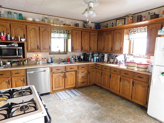 This adorable Bungalow has original woodwork. Dining Room shows the original hardwood flooring. Per the seller there are hardwoods under the carpeting in the Living Room and 2 Bedrooms. The third bedroom is currently used as their utility room. There is a whole house generator in the basement. Also there is a sump pump in the basement. The basement does stay damp in wet weather. The Horizontal furnace is in the basement crawlspace for easy access. The Metal 30 x 40 Shop was built in 2007. Has one 10 x 10 and two 8 x 8 doors all with electric openers. The 8 x 10 Shed in fenced backyard stays.