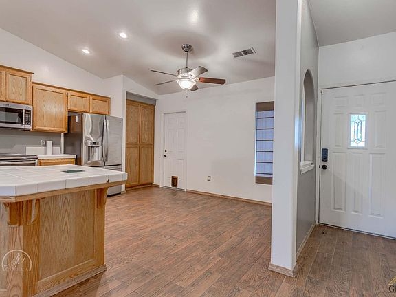Welcome to this beauty in Parkview Village! Great location and quiet neighborhood with the park just around the corner. 4 bedroom, 2 bath home. One of the bedrooms has been turned into a second living space but can easily be converted back. Wood Like tile throughout with carpeted bedrooms, large open concept kitchen with stainless steel appliances and double oven. Gorgeous updated shower in the Main suite. Cozy gas fireplace and double french doors lead to the amazing backyard that is an entertainer's delight! Large tiled covered patio, fire pit, separate fenced area for the animals, and extra storage shed. The huge sparkling pool was just resurfaced in Dec 2022. Fresh coat of exterior paint was completed in Dec 2022, completely finished garage with more storage above and RV parking. Also solar panels to help keep the bills down in our hot summers. Don't let this opportunity pass you by! Call your favorite realtor today for a showing!