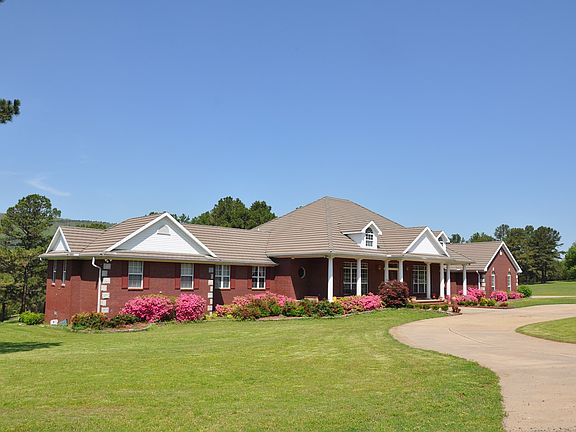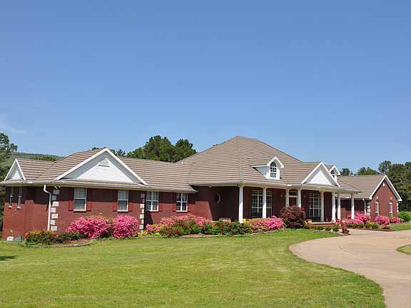 LOCATION: This property is located about 2 miles west from the city of Poteau part way up the eastern slopes of Cavanal Hill. The site is characterized by being a level bench area on the mountain at a point ending with steep stone cliffs which fall into a deep canyon below. The home is situated to take advantage of the mountain and valley views, and the city of Poteau is 1 mile east. Further east and south are the Sugar Loaf and Poteau Mountains. Access to this property is via a pave road which dead-ends at this location assuring maximum privacy. Tulsa is 2 hours, Oklahoma City is 3 hours and Dallas is about 5 hours by car. Jet service into Ft. Smith, Arkansas, which is 25 miles east. Fly your private plane out of Poteaus own Robert S. Kerr Airport and be in Branson, Missouri in under an hour. Centrally located in the heart of the United States. LAND: 2.26 acres of level to gently rolling land. The grounds have been professionally landscaped. SERVICES: Electric, water, phone, cable t.v., mail delivery and school bus route. HOME: This beautiful architecturally designed, Southern Plantation style home is the ultimate in layout and style. The home features over 4,000 s.f. with five bedrooms, three and ½ baths, a huge foyer, formal dining room, kitchen with large breakfast area, living room with gas log fireplace, huge utility room, office, rear deck and a double car garage. There is very little maintenance with the brick and vinyl exterior walls and concrete tile roof. The heat is gas and the air is electric. There is custom cherry wood work on the walls as well as cherry hardwood floors throughout much of the home. There is lots of crown molding, there are lots of electrical outlets throughout as well and it is custom wired for surround sound. All of the walls in the bedrooms, kitchen and bathrooms have been freshly painted in a neutral taupe. Room descriptions include the following: FRONT PORCH: 57.6 Long and covered with cement flooring. FOYER: 9.10 x 12.8, Wood floors, double leaded glass doors with 16 transom above, ornate light fixture, white doors and woodwork with dark burgundy textured walls. The formal dining room and the living room are adjacent to the foyer. FAMILY ROOM: 20.4 X 26.11, Wood floors, white textured ceilings, dark woodwork, 10ceilings on one portion and vaulted ceilings on the other with huge dark wood beams, built-in cherry bookcases on either side of and above the 7 tall section for the built-in t.v., surround sound and triple windows. The vaulted area has French doors and a special transom window with dark cherry woodwork above. There is a fireplace with ornate cherry mantle and woodwork above and built-in bookcases. There is a marble area in front of the fireplace. DINING ROOM: 16.11 x 12.8, Wood floors, white woodwork, dark burgundy walls, 11 foot ceilings, tray ceilings with mirror, triple windows with transom above and ornate light fixture over the table area. LIVING ROOM: 16.11 x 12.8, Wood floors, white woodwork and crown molding, dark burgundy textured walls, ceiling fan with light and triple windows with transom above. KITCHEN: 14.4 x 23.8, Ceramic tile flooring, lots of cherry cabinets with ceramic tile tops and backsplashes, taupe walls, double wall ovens, center island with cabinetry below and Jenn-Aire grill above and dishwasher and three skylights over the area that would serve as a breakfast room space. There is a large walk-in pantry off of the kitchen. EXERCISE/HOBBY ROOM: 14.10 x 18.8, Wood floors, mauve textured walls, white woodwork, one wall of mirrors and one wall of windows. There is lots of light in this room. UTILITY ROOM: 20 x 13.4, Ceramic tile flooring, papered walls, cherry cabinetry above washer and dryer connections, sink with ceramic tile countertops, ceiling fan/light, large ceramic shower to bathe pets and doors leading to outside rear yard. There is a long hallway that runs along the exercise room which has built
