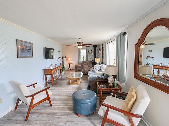 Beach vibes everywhere. Enter 600 Winslow Ave. past the composite, maintenance free front deck into a spacious, beachy and bright living room that features plank flooring, a tongue and groove wood accent wall and a wood burning stove. The living room flows to the kitchen and the dining room at either end through an oversized doorway and archway for a more open feel. The kitchen comes equipped with one year old appliances, new lighting and has an island for extra storage and another gathering place for friends and family as well as designer plank ceiling system. Off the kitchen is a great spot for extra storage and the stairs leading to the finished partial basement for extra living space limited only to your imagination. Man cave, game room, crash pad for guests, office, den, you name it. The basement area also has a large walk-in closet and convenient utility closet containing the water heater and 3 year young heating system. The bedrooms are in nice shape with ceiling fans and the bathroom is updated with a seashore feel as well. From the awning covered rear deck you'll notice the 110v hot tub, storage shed and the second floor deck of the 24'x24' two car garage. Head up the stairs to the deck and enter the real bonus room of this unique property. Your guests may not want to leave once they've seen this space. Kitchen, bathroom and separate sleeping area. If you're in the market this property is definitely a must see!