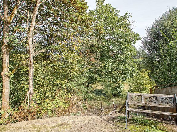 Shop & home on a private, park-like half acre. Quiet with big trees this lot overlooks beautiful Hess Creek. Contemporary style home, large deck, neat floor plan with vaulted ceilings and cool spaces. SHOP has 996 SF plus mezzanine, high ceilings, large garage door & 220 wiring. Good for home business, RV, cars or boats. Separate sound-proof storage bldg w/power & insulation was used as a recording studio.