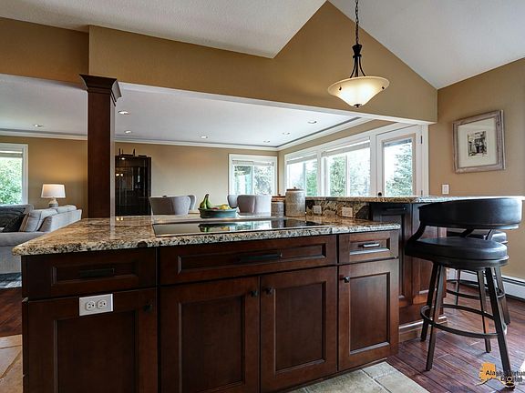 Serious wow factor with this multi level home. Updated throughout - kitchen, baths, Acacia wood floors, roof, water heater, furnace, septic tank! This home is move in ready. Master & 2 bdrms on top floor & awesome area on lower level for extended stay visitors/home office/gym-you name it! And check out the trex deck w those views! Sep living room w FP is perfect for cozy evenings. Formal dining