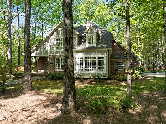 Beautiful estate in park-like setting on 1.91 acres in the heart of Raleigh. This spacious, custom built home features an open layout, main floor primary suite, and large common areas for entertaining. The chef's kitchen features ample cabinetry with appliance storage, granite counters, double wall ovens, breakfast bar, on demand instant hot water, butler's pantry and large walk-in pantry. The light-filled primary suite exudes luxury with two walk-in closets and a spa-like bathroom featuring dual vanities, storage, private lavatory and generous shower. The secondary bedrooms are oversized with multiple walk-in closets and each has direct access to an ensuite bathroom. Expansive loft/bonus area and walk-in attic on the second floor. Screened porch with fan and Bose speakers and grilling deck overlooking woods and newly fenced yard. Custom millwork, gleaming hardwoods. Additional features of this exceptional estate include newer roof with transferrable warranty, whole house filtration system, encapsulated crawl space, new R30 insulation, irrigation and landscape lighting. Oversized two car side loading garage with electric car charger and circular driveway. Convenient to shopping, dining, entertainment, hospitals, RTP, RDU and major roads. Steps from Umstead Park. No City taxes. No HOA. Welcome Home!