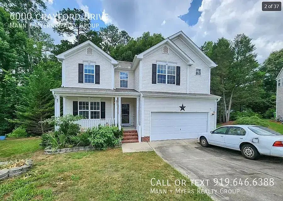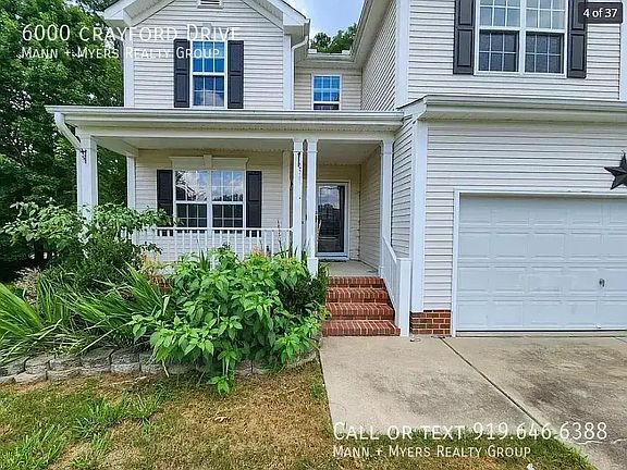 Welcome to 6000 Crayford Dr, a beautifully updated 3-bedroom, 2.5-bathroom single-family home in Avington Place subdivision in Raleigh, NC. This charming home boasts new flooring and fresh paint throughout, creating a modern and inviting atmosphere. The open floor plan seamlessly connects the living areas, making it perfect for entertaining and everyday living. The well-appointed kitchen offers ample counter space and storage, ready for all your culinary adventures. The spacious master suite features an en-suite bathroom with an oversized vanity, providing a luxurious retreat. Two additional bedrooms offer plenty of space and natural light. Step outside to the back deck, where you can relax and enjoy the privacy of the backyard, ideal for outdoor gatherings and peaceful moments. The attached two-car garage provides convenient parking and extra storage. Located in a cul-de-sac, this home offers easy access to I-540 and I-40, making commuting a breeze. You\'ll be close to shopping, dining, and entertainment options.