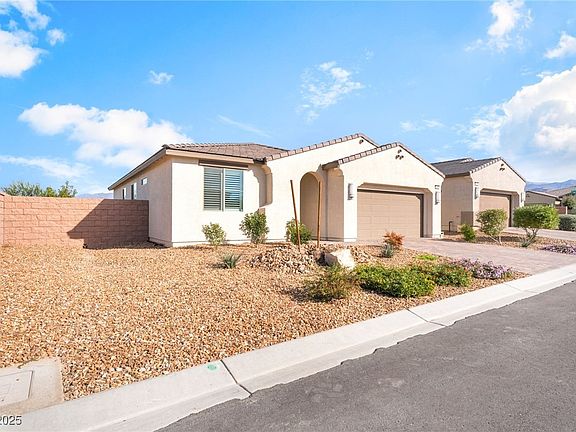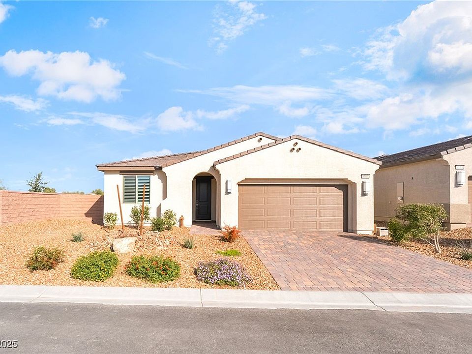 LOWEST PRICE IN THE COMMUNITY! Mountain Falls features a championship 18 hole golf course. The HOA includes free access to multiple community pools and gym! This single-story spans 1,513 sq. ft. with a separate-bedroom floor plan featuring 3 bedrooms, 2 baths, and a 2-car garage. Open-concept kitchen and gathering room, highlighted by upgraded cabinets, quartz countertops, and a full backsplash. Freshly painted with inviting tones, the home includes ceiling fans in every bedroom. There are beautiful plantation shutters and automated blinds througout the home. The private backyard offers panoramic Mount Charleston views and room for a small pool. With no rear or west side neighbors, enjoy privacy and tranquility year-round in this beautifully designed Valencia home at Mountain Falls. Structural upgrade includes a 7' sliding glass door at the primary suite and family room, a Covered patio, and extended pavers in the backyard, whole house water filtration system, fruit trees, & dog run.