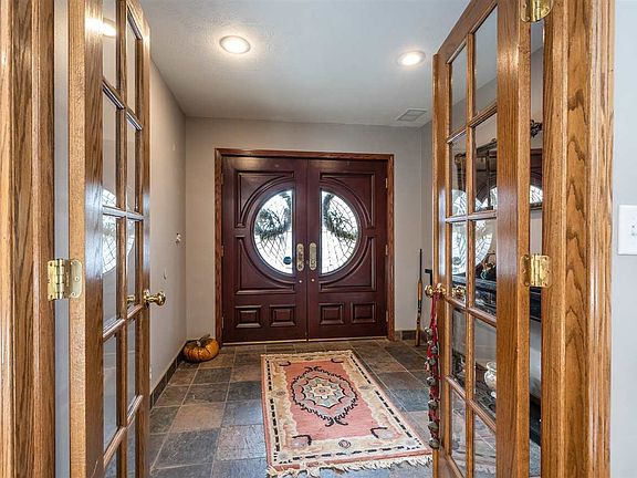This one-of-a-kind home features 6 bedrooms, 6 baths, an over sized 4 stall garage, a wine room, volleyball court and an indoor swimming pool area that is 2 stories high with a balcony. The home has over 7000 sq. ft. so there is plenty of room if you like to entertain friends or host all those big family gatherings. With 5 fire places and pot belly stoves through out the home, you'll have plenty of places to snuggle up on those cold winter days and watch movies. The master bedroom has a beautiful brick fireplace, a huge walk in closet and master bathroom. The lower level could be used as a mother in law living area as it has 2 bedrooms, a bathroom, laundry room, living room, a kitchen and separate entrance. The swimming pool room was built in 2003 and boasts a hot tub, pool table and has a "state of the art" dehumidifier system. Imagine the parties you could host in this room!!!! Brand new carpet was just installed through out most of the home and it is now ready for it's new owner.
