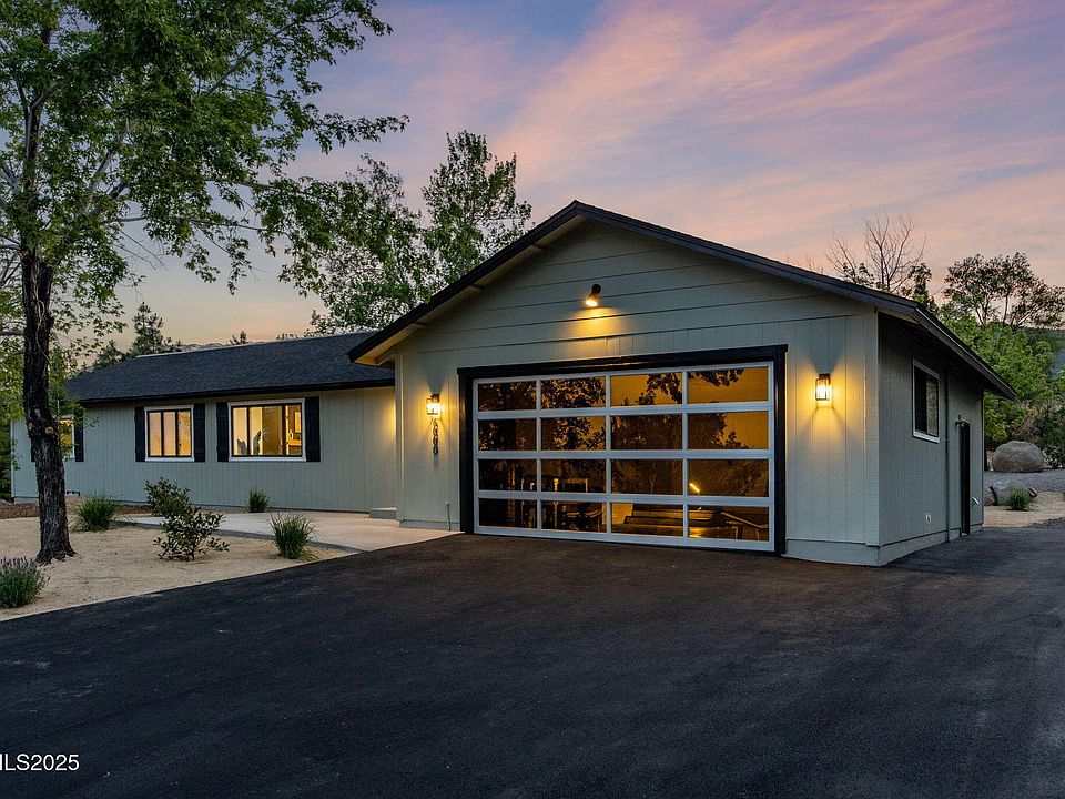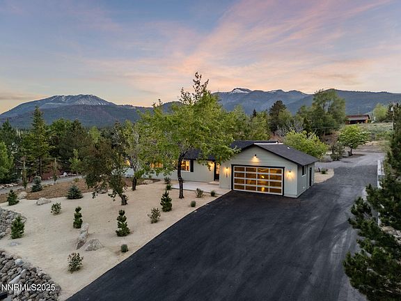 The home itself is fully remodeled and move-in ready. Offering nearly 2,000 square feet of bright, modern space, it includes 3 bedrooms, 2 bathrooms, and a bonus tech room or study to suit today's flexible needs. Interior upgrades include luxury vinyl plank flooring, fresh paint inside and out, new cabinetry, sleek quartz countertops, and a new electric heating and cooling system for year-round comfort. Even the garage has been elevated with a stunning new door and epoxy flooring. Outside, enjoy a brand-new roof, oversized driveway, and thoughtfully constructed retaining walls that enhance both function and curb appeal. Located just 30 minutes from Lake Tahoe and minutes to the best of South Reno amenities, this is modern mountain living at its best.