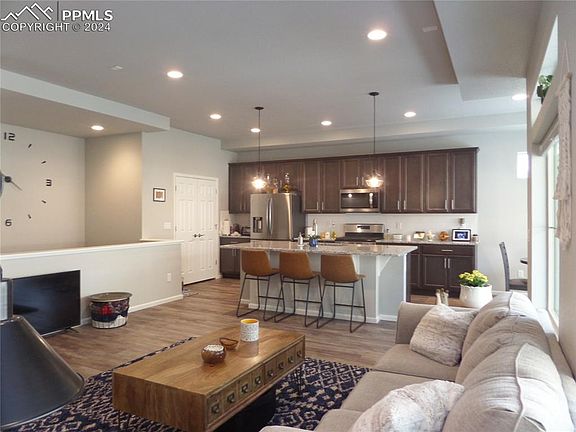 The Front entrance says Welcome Home. This 2 bedroom/2 bathroom home features beautiful LVP, Carpet in bedrooms, Large Island that could sit 6. The living room and dining area/kitchen overlook the beautifully landscaped yard. Plenty of room for entertaining! Both primary and guest bedrooms are generous in size. Friends can sit around the large island chatting as you prepare their meals! The covered patio and extended patio with pergola invites you to enjoy your morning coffee, lunch with friends or a quiet evening on the patio. All the work has been done for you with enjoying the backyard in mind! Come see this great ranch floorplan today!