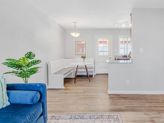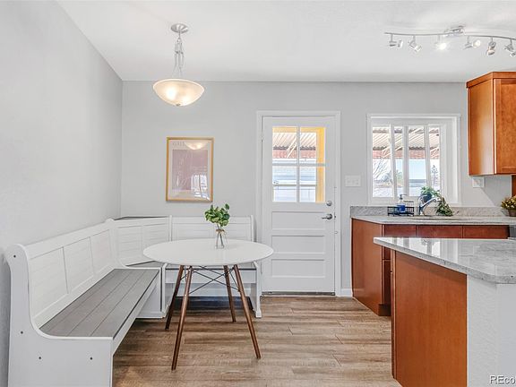 Stylish updates shine in this home poised on a corner lot across the street from Pioneer Park. A quaint covered front patio overlooks a fenced-in front yard with new turf. Further inside, an open and airy floorplan unfolds with beautiful hardwood flooring throughout complemented by light, neutral wall color. Natural light streams into a bright and welcoming living room through large windows. A dining area extends into a remodeled kitchen featuring granite countertops, updated cabinetry and a convenient laundry area with a stackable washer and dryer set. Three spacious bedrooms share a full bathroom with custom tile. A private backyard features a covered patio, sod, rock details and space for RV parking. Additional storage is found in an attached 1-car garage and a shed. Upgrades include a newer furnace, roof, A/C, hot water heater and windows. This home offers easy access to outdoor recreation, including a water park, playground, skate park, basketball courts and athletic fields.