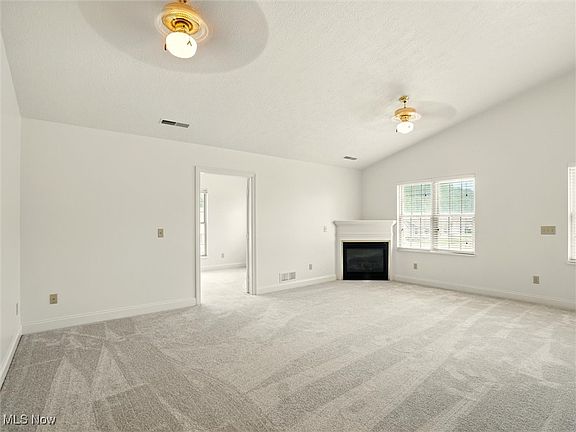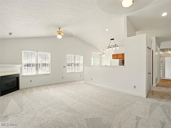 - Description: Spacious living room with an abundance of natural sunlight. Electric fireplace, new carpet, ceiling fans,Flooring: Carpet