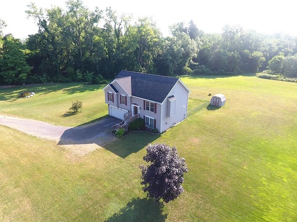 BETTER THAN NEW 3/4 Bedroom 2 FULL BATH bilevel Home with WIDE OPEN FLOOR PLAN nestled just perfect on 1 Park like ACRE backing to WOODS & STREAM!! The Great Room includes a large family room with beautiful wood floors! Spacious Kitchen w/ abundance of cabinets and counters, crown moldings, pantry & Glass Tile backsplash ! All Appliances included! BAY EATING AREA with french patio door leading to Party Deck and fenced in yard ! MASTER SUITE w/ separate bath that features a glass enclosed TILE SHOWER ! FINISHED WALKOUT Basement w/ 4th bedroom area and additional living room ! Large Laundry room ! Extra deep 2 car garage w/ pull down screen panel/door! Overhead opener ! Located on a quiet street ! Shed included! Privacy awaits !
