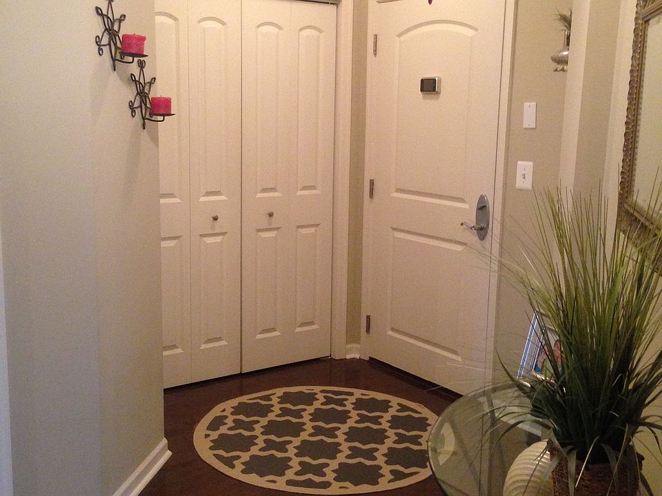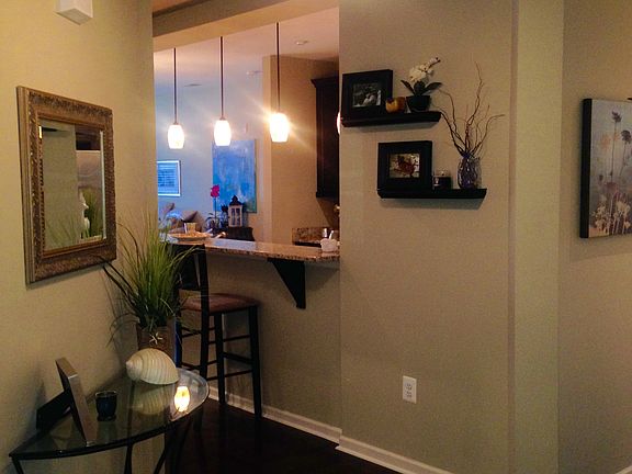 Corner condo with upgraded interior for rent. 3 1/4" maple hardwood flooring through foyer, hallways, dining room, and living room. 18" x 18" porcelain tile laid on diagonal in kitchen. Solid maple kitchen cabinets, granite countertops, with stainless steel appliances. Large kitchen pantry with wine lattice storage and built-in shelving. Hallway linen closet with shelving. Laundry room with 18" x 18" porcelain tile with tumbled stone mosaic border also includes front load washer and dryer units. Master suite includes 10' x 6' walk in closet with custom built-in closet storage units, master bath complete with 6' soaker tub/shower and 12" x 12" ceramic tile floor and tub/shower surround. Custom lighting fixtures and ceiling fans throughout unit. 9' ceilings. Underground parking garage with one reserved parking space and storage unit. Secured building with key fob entry into furnished lobby with elevator. Club house and pool use. Great location! Owner pays for HOA, water, and sewer. Tenant responsible for gas and electric. Must have proof of income.