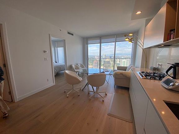 One of the most highly sought after communities conveniently located close to Metrotown Mall, skytrain, restaurants, schools, and parks. This spacious Junior 2 bed unit features Italian kitchen, Miele appliance, integrated fridge, engineered hardwood, Air-Conditioning, elevated 9' ceiling height, a junior bedroom possible for office use or nanny room. Amenities include fitness facility with yoga studio and infrared sauna, guest suite, multimedia room, lushly landscaped city rooftop garden with outdoor lounge and a grand lobby with 24 hour concierge. 1 parking & 1 locker included. The unit located on 32nd floor, with a fantastic city view. The rent includes water, gas, heating. NOT FURNISHED. NO pets, NO smoking, NO drugs. Available on 1 March 2025.