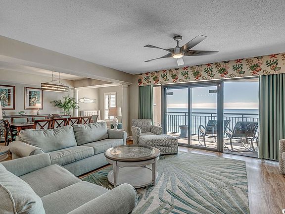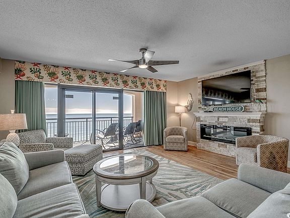 Direct oceanfront four bedroom four bathroom condo in The Island. This is a rare floor plan. Largest in the resort. There are only two like this in the building and this is the second listing of this type in 12 years. Exceptionally spacious and wide for an oceanfront condo. The living room, dining room, and the master bedroom are all direct oceanfront (See the floor plan included in the pictures). There's a large oceanfront balcony off the living room and dining area. In addition, the master bedroom has its own private oceanfront balcony (only floorplan in the building with this feature). The oceanfront dining room table seats 10. Interior features include upscale furnishings and fixtures, granite countertops in the full kitchen and bathrooms, LVP flooring in the living areas and tile in the kitchen and bathrooms. Lots of upgrades - new stainless steel appliances, glass backsplash, electric fireplace, beadboard and paint instead of wallpaper, new ceiling fans throughout. The master bathroom has a garden tub and  a shower. Full-sized washer/dryer for your convenience (not a stackable). Building features include climate-controlled enclosed corridors, a laid back elegant entry lobby, a fitness room and an on-site parking deck - no crossing the street! The oceanfront area, spanning over 400 feet, includes 2 pools (one heated year-round), a hot tub, a grassy tanning lawn, a large shady open-air veranda and a Tiki Bar and Grill (open seasonally). The kid themed indoor water amenities include another pool, another jacuzzi, a lazy river with a tunnel and a waterfall, and a kiddie pool and splash area. The award winning Cypress Room is more than just another hotel restaurant - serving breakfast and dinner year-round from its comfortable oceanfront dining room as well as the adjoining open air veranda. The Island is located in an upscale, beautifully wooded, primarily residential area just north of Myrtle Beach's famed "Golden Mile" and about a mile and a half north of the hustle and bustle of the downtown hotel section. This tranquil setting is still just minutes away from all the attractions of the Grand Strand. HOA covers building insurance, contents insurance (H06) and the following utilities-water/sewer, unit electric, basic cable and wireless internet. All information is deemed correct, but it is the responsibility of the buyers and their agents to verify all information.