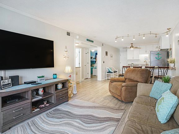 Don't miss this incredible chance to own a beautifully updated and fully furnished 2-bedroom, 2-bath condo with ocean views in the desirable Sea Cabin community in Cherry Grove! Located in Building B (Unit 133), this coastal retreat has been thoughtfully refreshed with stylish updates throughout, including fresh paint, newer LVP flooring installed by A&I, and a recently replaced hot water heater. The kitchen features newer cabinets with updated hardware, sleek stainless steel appliances, and a refreshed look that's perfect for beachside living. Both bathrooms have been modernized with new vanities, lighting, shower rods, and fixtures. Additional updates include newer lighting over the wet bar, track lighting above the breakfast bar, upgraded hardware on the sliding doors, and a Schlage keypad entry on the front door for added convenience and security. Furnishings and decor have been tastefully selected with comfort and style in mind, including flat-screen TVs and fresh bedding—making this unit truly move-in or rental ready. HVAC was replaced in September 2020. Sea Cabin offers great amenities, including a community pool, onsite laundry, and access to a private pier. Ideally located near top-tier dining, shopping, golf courses, and entertainment, this is a perfect opportunity for a vacation home or an income-generating property at the beach. Schedule your showing today and see all that this condo has to offer!
