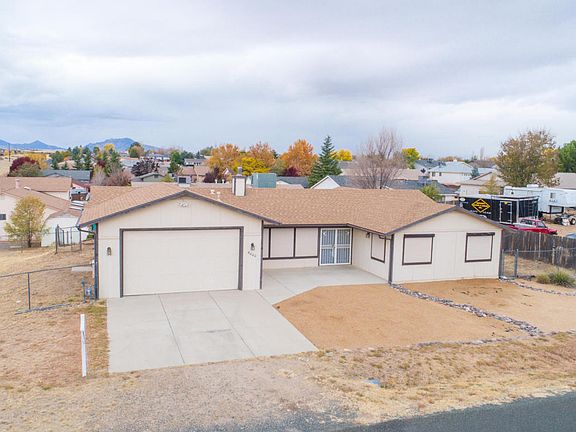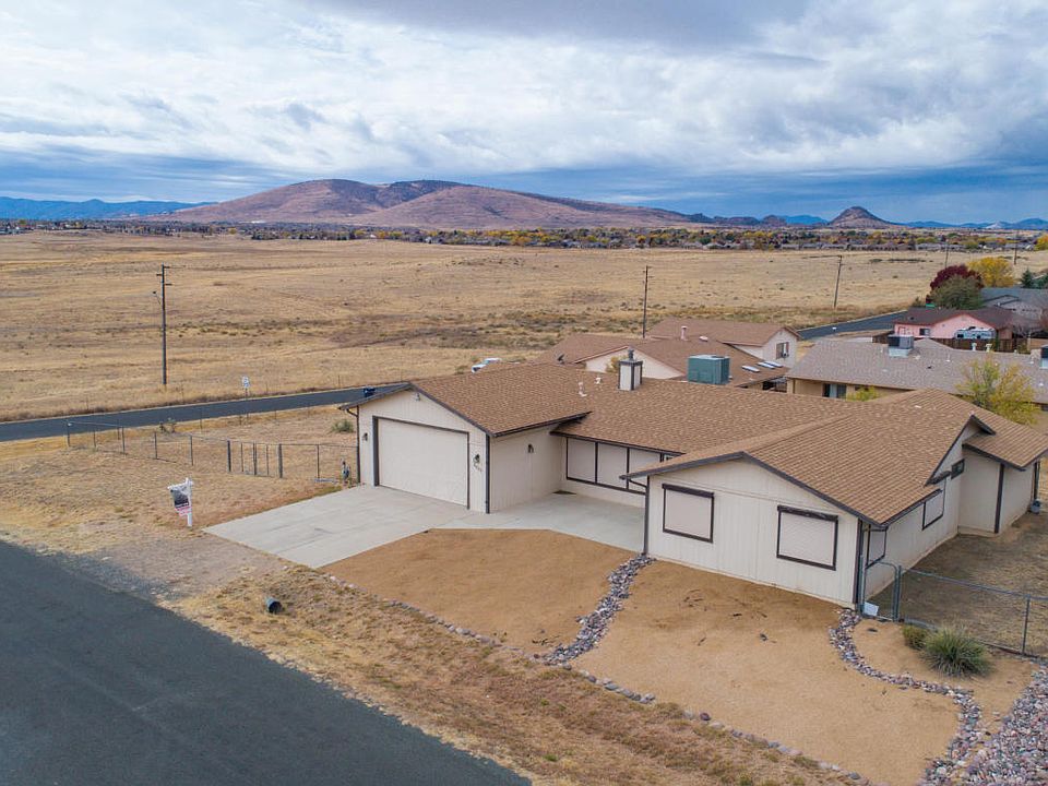 Don't miss your chance to own this 3 bed 2 bath home on a corner lot with spectacular views from the full length back patio! Don't forget the bonus office / den, built in bookshelves in the great room, and wood stove. Security blinds on all windows provide add both cooling and security. This is a double lot in a R2 area, nearly half an acre, fully fenced. Great wood laminate flooring and new carpet, with the whole home professionally cleaned. Close to schools and minutes from Prescott Valley Entertainment Center and shopping, and only a mile from Fain Rd. Don't miss your opportunity for a great price point home in a wonderful, family and pet friendly neighborhood with no HOA.