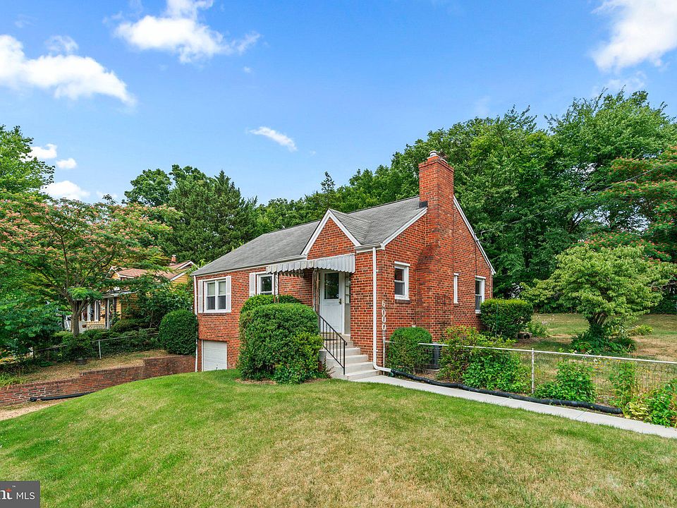 Charming all Brick Raised Rambler on a wonderfully spacious corner lot with a fully fenced rear yard, a one car garage and on and off street parking! A new concrete front walk-way welcomes you to the covered front entry of the home. A living room with wood burning fireplace, a dining area with rear exit, a kitchen (gas cooking, refrigerator and counter-top microwave), a hall full bath and three bedrooms complete the main level. Entrance to the upper level is accessible through the 3rd smaller bedroom and boasts a knotty pine finished second floor that could be an office and another bedroom. (Add a ductless mini-split system upstairs and voila, it's finished!). The lower level is unfinished but has been completely waterproofed has features a rear exit, a storage area, a laundry area with washer and dryer and access to the one-car garage. It could easily be finished. It's long time owner has lived there for over 50 years. Replacements incl: Roof 09', Water Heater 23', Gas Stove 23', Bath Fitter 07', Furnace 18', Windows, Waterproofing both indoor and exterior (foundation grading) + sump pumps. There are hardwood floors underneath remaining carpeted areas. This is a fabulous opportunity to own a single family detached home with endless possibilities which could be done over time.