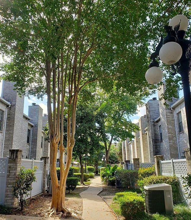 2-story beautiful updated Townhouse/Condo close to Galleria area. Granite countertops and backsplash grace the galley kitchen, teamed with brown soft-close cabinets, gleaming stainless steel appliances, and pendant lighting. Kitchen is open to the dining/living room combination for easy family or entertainment living! LED recessed lighting plus ceiling fans/lights. Tile floor perfect for pets and easy cleaning. Enjoy mature trees and green space from the outdoor patio. The lovely swimming pool is steps away-one unit over. Fireplace downstair and upstairs - great for winter days. Carpet upstairs. 2 ensuite bathrooms upstairs with granite countertops - luxurious master bath has a large bathtub and separate double shower with rain head and hand-held showerheads. Closets upstairs opened up for easy access and closet organizers. 2-car attached garage. 24-hour man-gated security. Easy access to the Galleria, Highway 59, Beltway 8, Westpark Tollway and I-10.