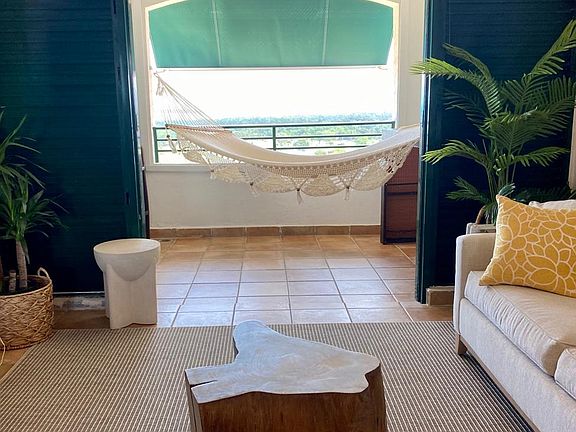 Amazing ocean views from the entire apartment, located in the Wyndham Grand Rio Mar Hotel area, Rio Grande municipality. Only 30 minutes from the International Airport. Enjoy the best view of the area. From the balcony you can appreciate the view of the Yunque National Forest, golf course, lakes and beautiful white sand caribbean beach. You will love the high ceiling (up to 20 feet). Cross-ventilated apart. The apartment consists of 2 bedrooms, 2 bathrooms, shutters in all windows and a balcony. Complex has elevator, water tank and electric generator. Apart is furnished, with equipment and appliances and golf cart. Includes 2 air units for the entire apartment. In the community you can enjoy the golf courses, tennis courts, beach, pools, clubhouse, country club, beach club, casino, spa, restaurants at the Wyndham Grand Rio Mar Hotel and much more. Minimum Rental Term - 3 months. The tenant pays the utilities and the landlord pays the complex maintenance fees.