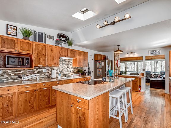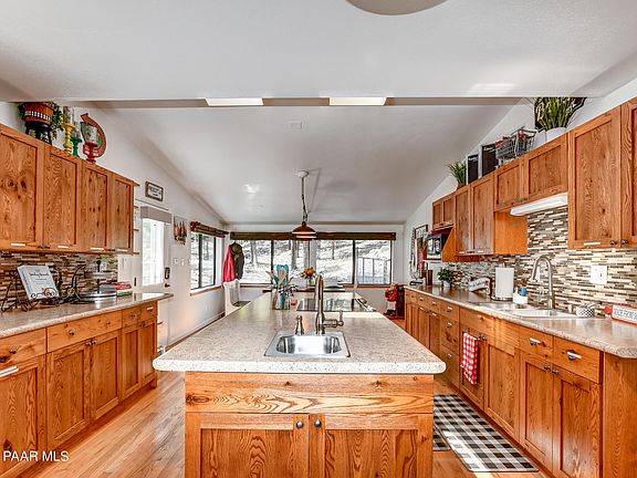 One-of-a-kind cabin in the woods. This large home was built in 1969, but you would never know that due to so many upgrades. Wrap around windows giveyou panoramic views of the surrounding forest (just 500 feet from Prescott National Forest). And with the touch of a button you can open or close allthe automatic windows shades. Modern features such as Starlink, a large detached 2 car garage with storage room plus another detached 1 car garage.Large decks wrap around 3 sides of the home. Gazebo, greenhouse and even a generator for power outages. Tankless water heater and zoned mini splitHVAC will keep you comfortable year round. Enjoy the complete privacy as this home cannot be seen from Walker road. 2 Fireplaces and hardwood floorsthroughout most of the house.