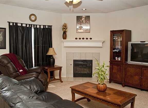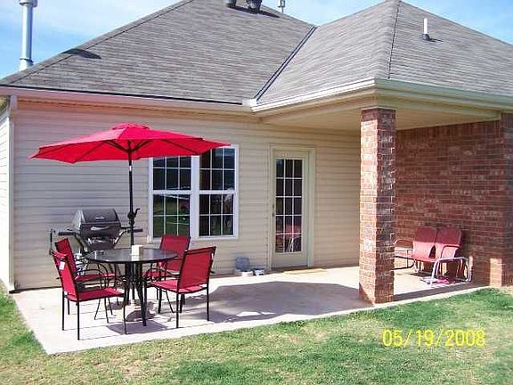 With easy access to I-40, I-240 and backing up to Tinker AFB, this location can't be beat! A bright red door welcomes you under the covered front porch as you enter into your new home! The dining room flanks the entry and leads you through the archway to your spacious living room with w/cozy corner fireplace! Set the kids up at the eat-at bar for an afternoon snack while you prep for dinner in your updated kitchen with crisp, white cabinets and stainless steel appliances that sparkle off the glass tile back splash! The master retreat is large enough for a king-sized bed and boasts dual sinks and walk-in closet! Two more bedrooms and another full bath create plenty of space for your loved ones and a storm shelter in the garage keeps everyone safe! Fresh paint in fun contemporary colors adds a cozy feel throughout the home. Pop a grill on your covered back patio and enjoy the expansive back yard which is a blank slate for your landscaping dreams and perfect for a game of football!