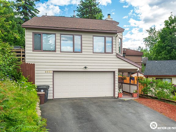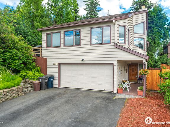 Open-concept living area with soaring vaulted ceilings & large windows! Quiet cul-de-sac with lrg yard. 25k in recent remodels include kitchen w/ concrete counters & stainless appliances, master bath w/ jetted tub, floors/counters. New interior paint. Master features sauna & WI closet. Newer roof & boiler. Peek-a-boo views of Denali. Mins to trails/parks. Walk to school. Close to hospital/JBER.