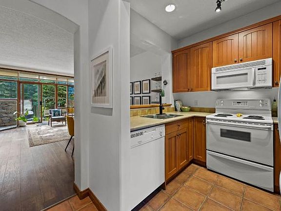 Enjoy tranquility in this 2 bedroom, 2.5 bathroom townhouse with exceptional ski-in/out access to the Morrisey and Orient chairlifts. Nestled in the woods next to McGillivray Creek and the back nine of the Sun Peaks Golf Course, this property showcases a bright and open layout with a wall of south facing windows from which to enjoy the natural landscape outside. Conveniently located on the Valley Trail system, just a few min walk to the Village Stroll. The bonus crawl space and 1 car garage offers plenty of storage! After skiing or golf, relax in your private hot tub on your sunny patio or enjoy an evening with friends and family gathered around the cozy fireplace. Features include in-floor heated tile in kitchen and baths, durable laminate flooring in the main living area, updated interior paint, lighting fixtures and faucets throughout, keyless entry and much more! Rentals over 28 days allowed. Pets allowed. GST is not applicable. 2022-09-20