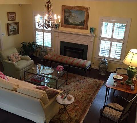 Beautiful 2 bedroom, 2 1/2 bath condo. Great location. 1st floor has living room, dining area, den/office, gas fireplace, hardwood floors, kitchen with white cabinets and black granite countertops. All bright with windows throughout and plantation shutters. Upstairs is the master suite with spacious bedroom, walk-in closet, and master bath with marble-enclosed shower. Other bedroom has its own bath. 2-car attached garage and patio area.