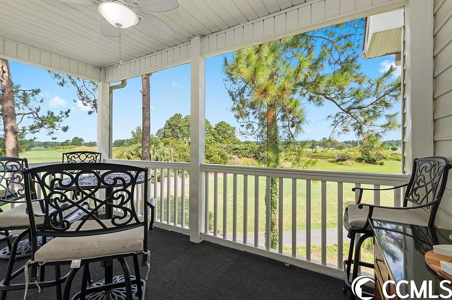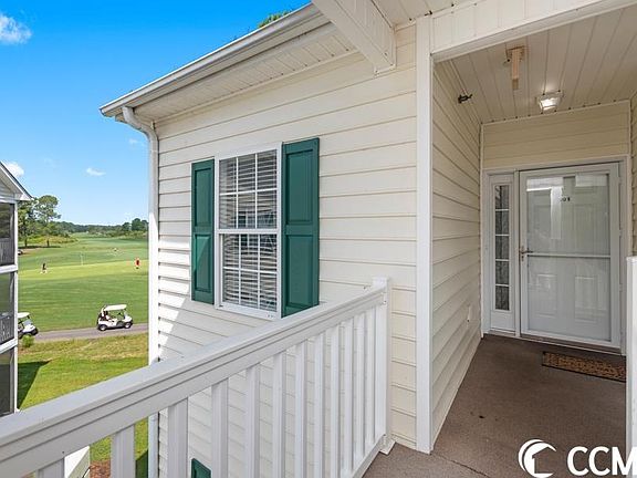 Perfect snowbird second home or mid-term rental. Owners invested thousands in new furniture this year. Located on the greens between two beautiful golf courses-Man O' War and The Wizard. Wake up to views of the fairways from your master suite. From your back deck, enjoy a beverage in the morning and during sunsets. Light and airy corner unit with more windows and vaulted ceilings, wood floors, stone countertops, black on black appliances, and custom cabinets with soft close doors & hinges. Tons of storage with walk-in master closet, full sized laundry room. Community amenities include pool, outdoor grills, playground and plenty of parking. No short term rentals allowed in the community starting 1 Jan 2024