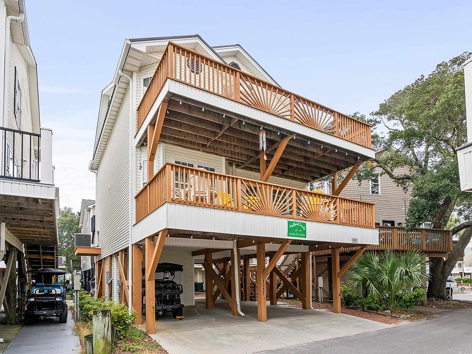This 5-bedroom 3.5 bath raised beach house has a view of the lake and is 12 houses from the ocean. NEW metal roof in 2023, NEW Carrier HVAC systems July 2024 (both systems), Freshly painted, NEW stainless Steel appliances, New granite, & NEW furniture in 2023/2024. As you enter 1017 you have a large kitchen with NEW stainless Steel Appliances, open kitchen with breakfast bar to the the dining area and living area. 1st floor covered deck is off the living room along with 1/2 bath, main bedroom with full bath is located on 1st floor along with full size washer/dryer. All NEW paint and high quality furniture. Upstairs will be 4 more bedrooms and 2 full baths along with another deck.