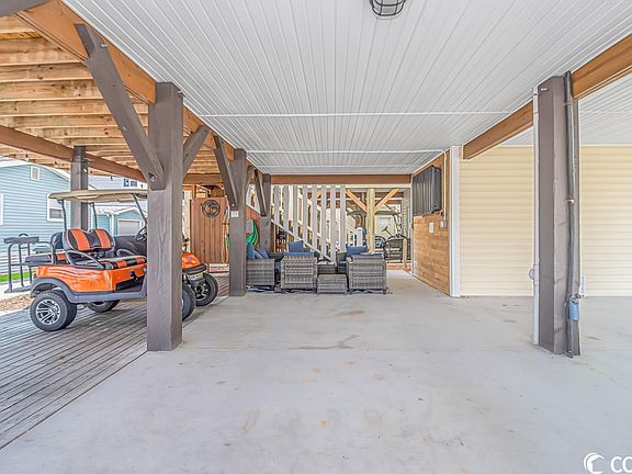 Corner Lot! Turn Key! All NEW decking and railings! Located in the award winning Ocean Lakes Family Campground, this 5 bedroom 3 bath raised beach home is just waiting for its new owners. Just steps from the beautiful Atlantic Ocean! Home is perfectly situated on a corner lot making it easy for parking. On the interior of the home, you will be greeted by a large open and airy living space that is open directly into the kitchen that offers a spacious dining space. Offering luxury vinyl plank flooring throughout the main level, durable ceramic tile in the bathrooms, and laminate flooring throughout the upstairs, this home is move in ready! The kitchen boasts plenty of space along with a spacious dining area. Downstairs offers a private bedroom and bathroom while upstairs you will find 4 additional bedrooms along with 2 more full bathrooms. Two of the upstairs bedrooms lead out to a private upstairs balcony. The brand NEW decks offer views of both Sand Dollar Lake and the beautiful Atlantic Ocean. Here at site 1120, there is enough room for everyone! Coming fully furnished, all you will need is your suitcase! Just a short golf cart ride to the pool, arcade, campground store, and snack bar! Perfect for anyone, this home is ideally positioned to enjoy summers by the South Carolina Coast. Home is conveniently located close to all the amazing amenities Ocean Lakes has to offer! Amenities included are indoor/outdoor pools, lazy river, waterpark, mini-golf, arcade, basketball courts, volleyball courts, and much more! Come check out this property today! All measurements are approximate and not guaranteed. Buyer responsible for verification.