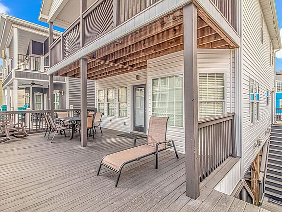 Ocean view beauty! Location, Location, Location! Impressively designed 5 bedroom 5.5 bath home located within steps of the beautiful Atlantic Ocean! Located behind the gates of the award winning Ocean Lakes Family Campground, site 1201 is offering oversized double decks, ample parking, two separate entrances, a spacious living room, kitchen, and a great location within the park. As you enter the home, you're greeted by a spacious living room that offers laminate flooring, a generously sized eat-in kitchen, first floor master bedroom and bathroom along with a half bath downstairs. With a private downstairs suite offering access to the rear deck which overlooks Surfside! Upstairs there are 4 additional bedrooms along with 4 more bathrooms. This home was designed for multiple families and/or large gatherings. 2 of the upstairs bedrooms lead out to the private balcony. Sit back and enjoy watching the golf carts go by! With excellent rental history, this home offers countless opportunities for investment purposes! Perfect for anyone, this home is ideally positioned to enjoy summers by the South Carolina Coast. Home is conveniently located close to all the amazing amenities Ocean Lakes has to offer! Amenities included are indoor/outdoor pools, lazy river, waterpark, mini-golf, arcade, basketball courts, volleyball courts, and much more! Come check out this property today! All measurements are approximate and not guaranteed. Buyer responsible for verification.