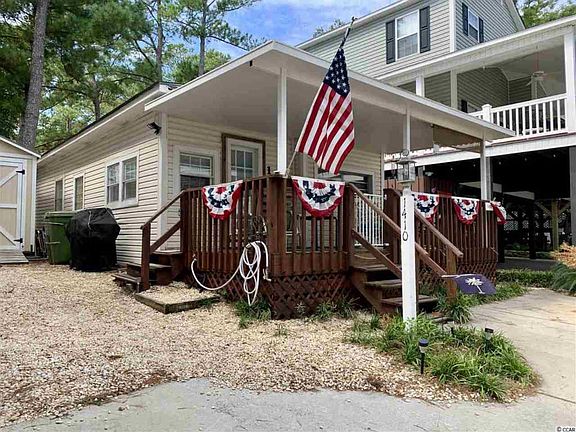CHARMING 2 BED/2 BATH BEACH BUNGALOW W/ SPACIOUS, COVERED FRONT PORCH IN HIGHLY DESIRED OCEAN LAKES! Here is an excellent opportunity to purchase your very own beach house in oceanfront Ocean Lakes. This adorable property is just steps to Sand Dollar Lake and a quick and easy stroll to the beach. The interior boasts of a cozy layout for the kitchen, dining and family room areas giving the home a nice open concept. Includes a nice master bedroom with king size bed and large master bath that includes a whirlpool tub/shower combo. Home is being sold fully furnished and includes all kitchen appliances, full size washer/dryer and furniture. Nice size lot with great outdoor space including a large covered front porch, paved driveway, and a solid garage/workshop to store all you beach gear and your golf cart. MUST SEE! NOW SHOWING! There is no HOA in Ocean Lakes however, the house is located on leased land, which is payed in two semiannual payments in January and July. Amenities abound in Ocean Lakes' gated community and include one mile of pristine white sand beach, 24 hour security, trash pick-up, indoor/outdoor swimming pools, new large water park/slides, 2 full size basketball courts, miniature golf, fire pit, shuffle board, horseshoes, corn hole, ping-pong, Sandy's Down-under skatepark, recreation building, arcade, general store, golf cart rentals, Sandys Meet & Eat restaurant and more!