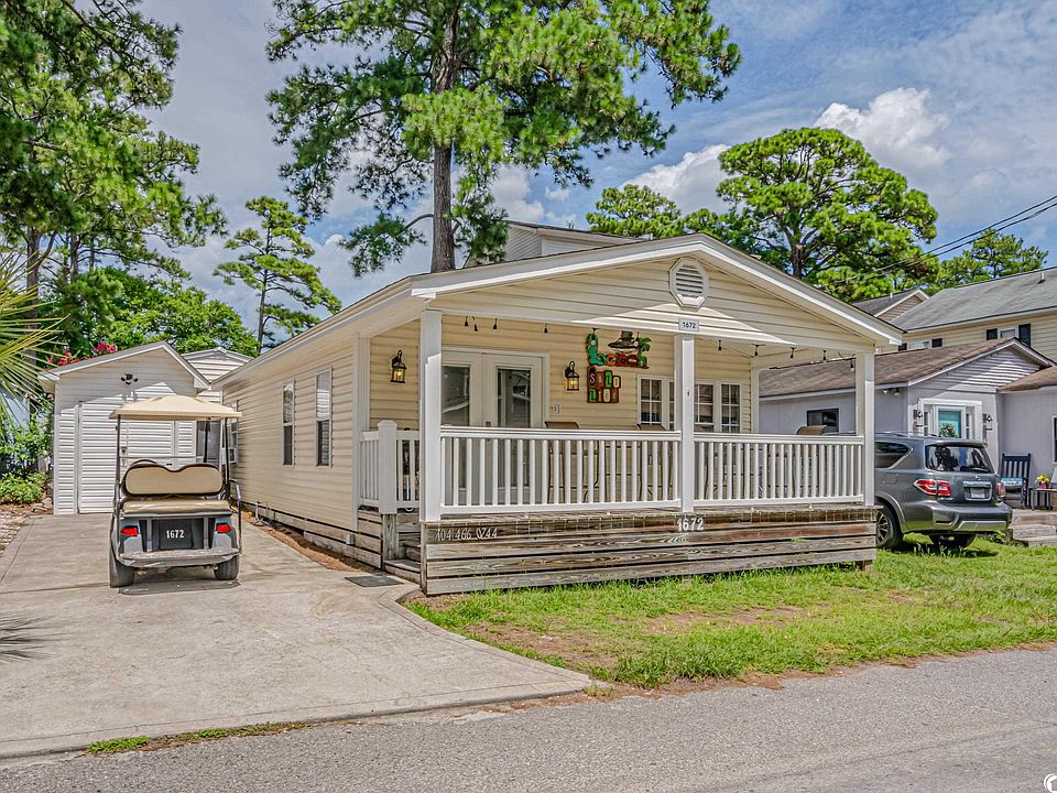 Great location in the award winning Ocean Lakes Campground. This 2 bedroom 2 bath is ready to make your beach vacation home dreams come true! New roof in 2021! Great covered porch out front. Perfect vacation home or rental. Come see it soon!