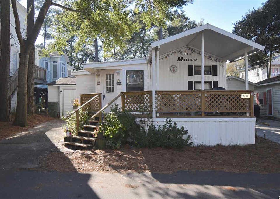 Perfect opportunity to own a beach bungalow in the award winning Ocean Lakes Family Campground. Just listed! With 2 bedrooms, 2 baths, and 2 additional bunk rooms, there is enough space for everyone! Site 1708 is located on Mermaid Drive and is in close proximity to the beach. Home offers a partially covered front porch, a detached storage shed for your golf cart and other beach supplies, and a concrete driveway on the exterior. Once you enter the front door, you're greeted by a "flex" room that can be used as additional living space or dining space. There is also a generously proportioned master bedroom and bathroom right off from this room that offers plenty of space along with a full size washer/dryer. The living room offers laminate flooring, vaulted ceilings, and is open directly into the kitchen space. There is plenty of room for everyone here at site 1708 with a unique layout. Off from the kitchen, there are 2 additional bunk rooms that are perfect for the kids. Located on the rear of the home right off from the living space, there is a second bedroom as well as another full bathroom for all of your guests. Perfect for anyone, this home is ideally positioned to enjoy summers by the South Carolina Coast. Home is conveniently located close to all the amazing amenities Ocean Lakes has to offer! Amenities included are indoor/outdoor pools, lazy river, waterpark, mini-golf, arcade, basketball courts, volleyball courts, and much more! Come check out this property today! All measurements are approximate and not guaranteed. Buyer responsible for verification.