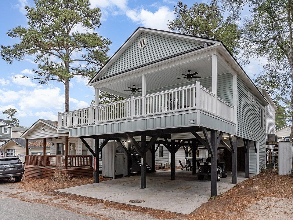 Coastal Raised Beach House – Perfect for Investors or a Secondary Home! This beautifully updated 3-bedroom, 2-bathroom raised beach house offers modern upgrades and coastal charm. Recent renovations include: Completely remodeled bathrooms & updated plumbing. Brand-new LVP flooring throughout. New windows, ceiling fans, and kitchen cabinets & countertops New Washer & dryer included New roof (2024) and brand-new HVAC system (2025) for peace of mind. Golf cart (4 years old) included for easy beach access. Enjoy the ultimate low-maintenance getaway or rental property with these top-tier upgrades! Contact the agent for the full list of improvements and to schedule a showing. Located in the award winning Ocean Lakes Campground. Amenities include Gated community, 24 hour security, lazy river, indoor and outdoor pools, trash, and golf cart friendly community with beach front access throughout. Measurements are approximate and can be verified by buyer.