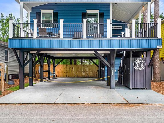 Welcome to site 1737 located in Ocean Lakes! This recently remodeled 3-bedroom 2 bath home has been updated to include new vinyl siding, new deck railings, windows, New roof in 2021, New HVAC 2024, interior repainted, new furniture, and decor. As you come up the covered steps you have a large deck that will have morning sun and afternoon shade. Entering the home you have a large open concept dining area and huge living room with electric fireplace. Off the dining area is the kitchen with granite counters, tile backsplash, and stainless steel appliances. Bedroom #1 has 2 twin beds, bedroom #2 has a queen bed, and both share full bath #1 with tub/shower combo. Primary bedroom has a king size bed and attached primary bath with walk-in shower with glass sliding door. Washer and dryer in located in the large shed/garage under the house.