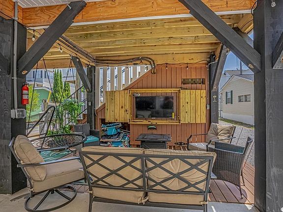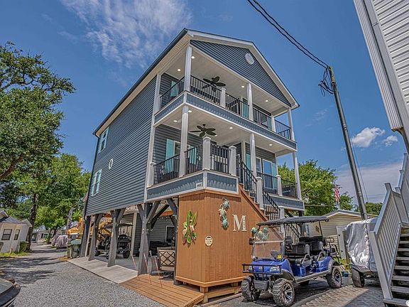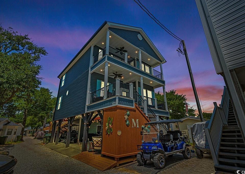 Why wait for new construction when this 2023 home is ready and being sold fully furnished! Motivated seller. 5-bedrooms and 3 baths - composite decking/steps. Welcome to M-22 at Ocean Lakes, if you are wanting a new raised beach house close to all amenities and the ocean, you found it! Main floor has 1st bedroom and 1 full bath, large living room, dining area, beautiful kitchen with granite counters, stainless steel appliances, and full size stackable washer/dryer. 2nd floor has 4 additional bedrooms and 2 full baths. Enjoy morning sun on either 1st or 2nd floor deck or relax under the house in the shade and enjoy the entertainment area.