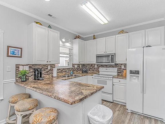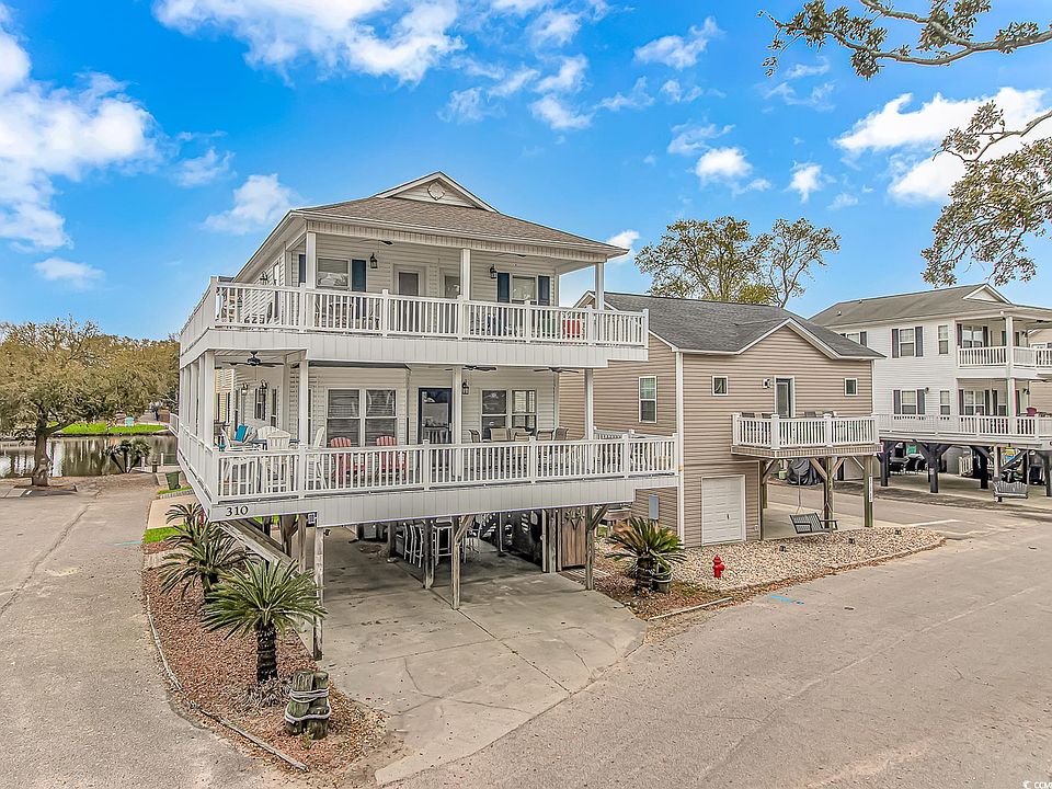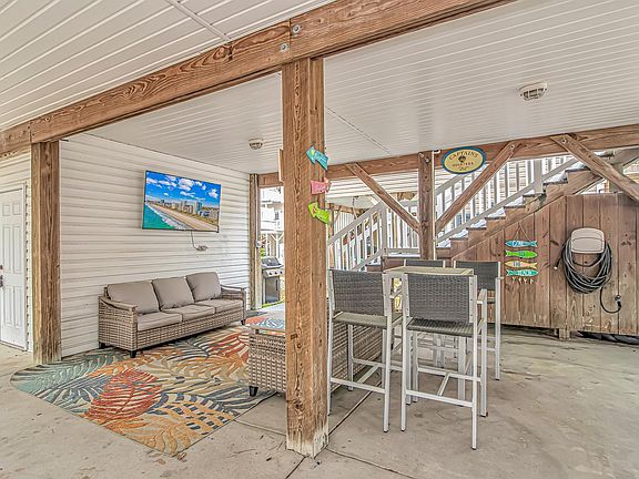 This very open and spacious 6 Bedroom, 3 Bath raised beach house is just a very short walk or golf cart ride to the beach. The kitchen has a nice breakfast counter to sit at and a large dining table, LVP flooring. It has a great porch to sit and listen to the ocean or watch the world drive by on their golf carts while your drink your morning coffee or afternoon cocktails. This home is already setup for weekly beach vacationers and earns excellent rental income. Located in the private gated Ocean Lakes community featuring award winning amenities that focuses on being family-oriented. This home is being sold fully furnished! Call today to schedule your private showing.