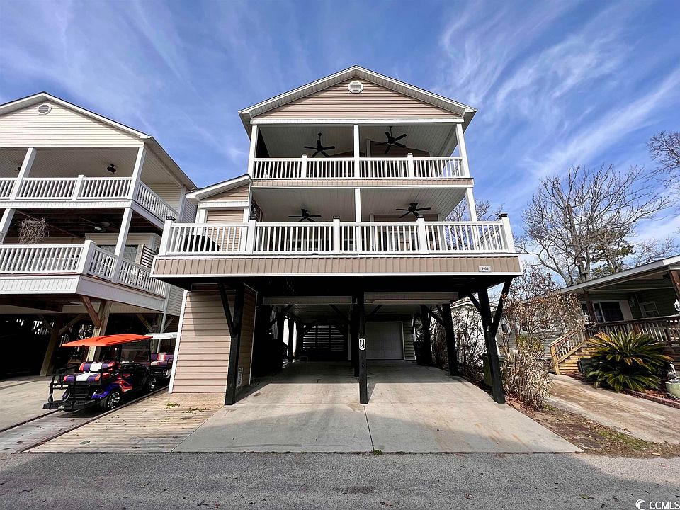 BEST VALUE IN OCEAN LAKES! WELL BUILT 4 BED/3 BATH RAISED BEACH HOUSE WITH WELL MAINTAINED ELEVATOR LOCATED IN THE HIGHLY DESIRED 5,000 SECTION OF OCEAN LAKES. HOME FEATURES AN OPEN FLOOR PLAN WITH PLENTY OF GATHERING AND DINING SPACE AND A FULLY EQUIPPED KITCHEN WITH LARGE BREAKFAST BAR. YOU WILL FALL IN LOVE WITH THE XL MASTER BEDROOM ON 2nd LEVEL WITH SITTING AREA, HUGE WALK-IN CLOSET, LARGE ENSUITE WITH BEAUTIFULLY TILED WALK-IN SHOWER AND A PRIVATELY ACCESSIBLE FRONT PORCH WITH A RELAXING SITTING AREA PERFECT FOR YOUR AFTERNOON COCKTAILS OR NAPS. THIS HOUSE WAS BUILT WITH CONVENIENCE AND RELAXING IN MIND AND INCLUDES A LUXURIOUS ELEVATOR, COVERED STEPS, PARTIALLY COVERED FRONT PORCH AND TONS OF UNDERNEATH LOUNGING SPACE. THIS HOUSE IS PERFECTLY SITUATED FACING EAST SO THE FRONT PORCHES ENJOY SUN IN THE MORNINGS WITH SHADE IN THE AFTERNOONS. HOME IS BEING SOLD FULLY FURNISHED. GOLF CART IS NEGOTIABLE. MUST HONOR RENTALS. GREAT WALK-IN CASH FLOW WITH MOST OF JUNE-AUGUST ALREADY BOOKED FOR SUMMER. DON'T WAIT! THIS HOUSE HAS IT ALL AND IS PRICED TO MOVE FAST! There is no HOA in Ocean Lakes however, the house is located on leased land, which is payed in two semiannual payments due in January and July. Amenities abound in Ocean Lakes' gated community and include one mile of pristine white sand beach, 24 hour security, free trash pick-up, free cable TV, indoor/outdoor swimming pools, large water park/slides, lazy river, kid's splash zone, new dog park, new beachside coffee house and ice cream bar, playgrounds, full size basketball courts, miniature golf, fire pit, corn hole, shuffle board, horseshoes, ping-pong, Sandy's Down-under skatepark, recreation building, arcade, general store, golf cart rentals, Sandys Meet & Eat restaurant and more!