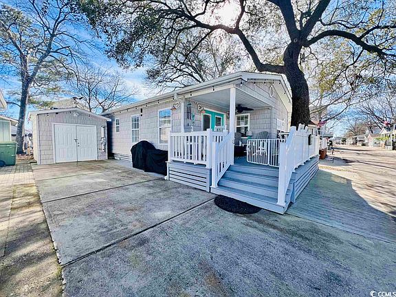 NEW TO MARKET IS AN IMMACULATE 3 BED/2 BATH STICKBUILT BEACH HOUSE IN AWARD WINNING OCEAN LAKES! MUST SEE!!! YOU WILL SIMPLY FALL IN LOVE WITH THIS AMAZING, TURNKEY TREE HOUSE ABSOLUTELY PRISTINE INSIDE AND OUT! SO MANY UPGRADES INCLUDING, SOLID SURFACE GRANITE COUNTERTOPS IN KITCHEN AND BATHS, SPACIOUS BREAKFAST BAR, STAINLESS STEEL APPLIANCES, BEAUTIFUL LVP FLOORING, TALL CATHEDRAL/SHIPLAP CEILING, COASTAL FURNITURE AND DECOR, HEAVY DUTY VINYL SHAKE SIDING, COMPOSITE DECKING, PAVED DRIVEWAY AND A DETACHED STORAGE BUILDING TO STORE YOUR GOLF CART AND ALL YOUR BEACH GEAR. EXCELLENT LOCATION WITH GRAND SOUTHERN LIVE OAK AND LOW LOT LEASE! THIS GORGEOUS HOME HAS NEVER BEEN RENTED AND IS BEING SOLD FULLY FURNISHED MINUS OUTDOOR FURNITURE AND PERSONAL ITEMS IN STORAGE BUILDING, CLOSETS AND DRAWERS... GOLF CART NEGOTIABLE. ROOF REPLACED IN 2019. NOW SHOWING! Measurements are not guaranteed and are the responsibility of buyers and/or their agent. There is no HOA in Ocean Lakes, each home is located on leased land with yearly lease, which is payed in two semiannual payments due in January and July. Amenities abound in Ocean Lakes' gated community and include almost a mile of white sand beach, 24 hour security, 7 fishing lakes, free trash pick-up, free cable TV, indoor/outdoor swimming pools, large water park/slides, lazy river, kid's splash zone, new dog park, new beachside coffee house and ice cream bar, playgrounds, full size basketball courts, miniature golf, fire pit, corn hole, shuffle board, horseshoes, ping-pong, Sandy's Down-under skatepark, recreation building, arcade, general store, golf cart rentals, Sandys Meet & Eat restaurant and more!