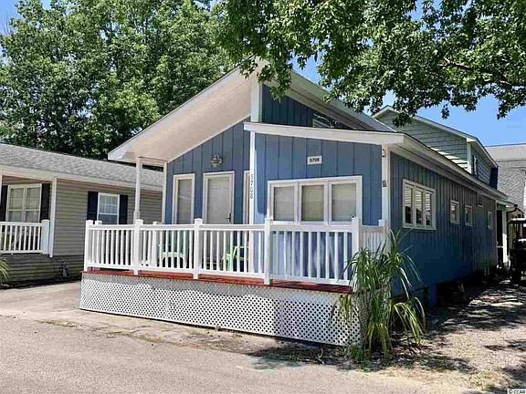 ADORABLE BEACH BUNGALOW IN OCEANFRONT, OCEAN LAKES. Excellent opportunity to own your salty piece of this awarding winning, oceanfront resort! Open concept home with 2 Bedrooms/2 full baths, bunk house room, tall ceilings, clean white tile flooring and beautiful sky lights that allows for wonderful natural sunlight. Home includes spacious rooms and baths and offers great outdoor living with front porch, paved drive and detached garage to store your golf cart and all your beach gear. Sound property and structure with sturdy floors and brick underpinning. Home is being sold fully furnished including, washer/dryer and golf cart. Never been rented! Showing Now! There is no HOA in Ocean Lakes however, the house is located on leased land, which is payed in two semiannual payments due in January and July. Amenities abound in Ocean Lakes' gated community and include one mile of pristine white sand beach, 24 hour security, trash pick-up, indoor/outdoor swimming pools, new large water park/slides, 2 full size basketball courts, miniature golf, fire pit, shuffle board, corn hole, horseshoes, ping-pong, Sandy's Down-under skatepark, recreation building, arcade, general store, golf cart rentals, Sandys Meet & Eat restaurant and more!