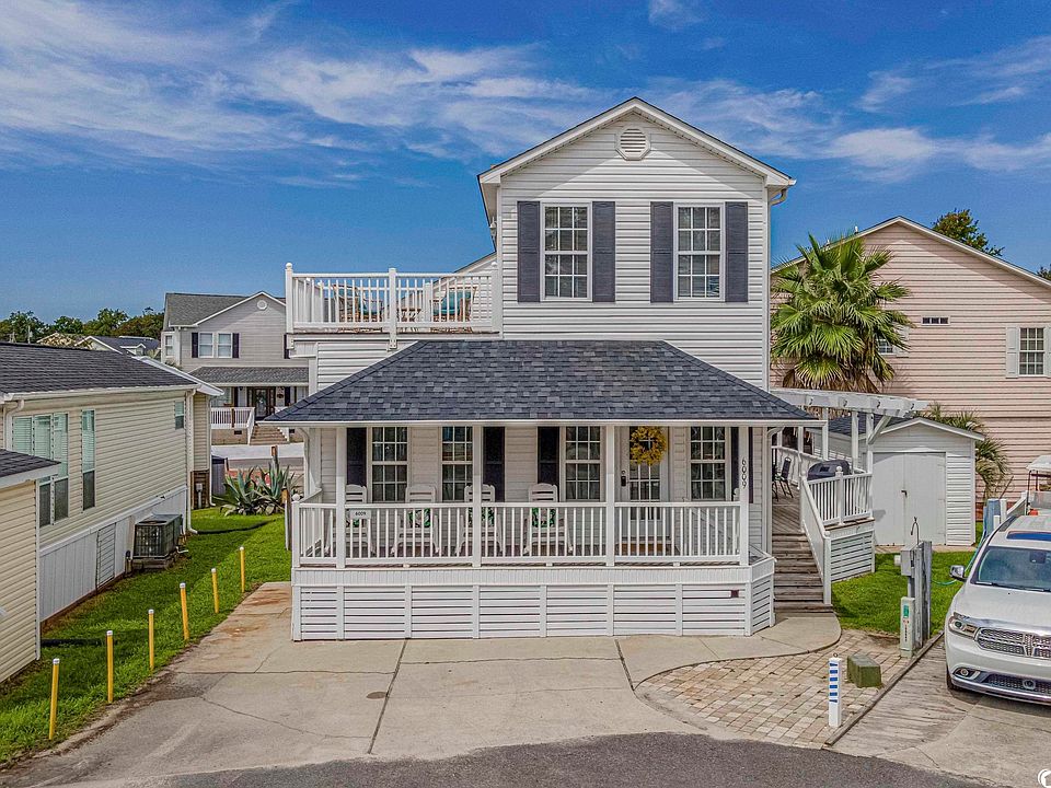 NEVER QUITE SEEN ANYTHING LIKE THIS BEFORE.  Two Story 5BR addition that is mainly house but the downstairs bathroom still remains a small piece of the camper.  The Crow's nest upper deck has a water scene.  The house part is roomy & decorated nicely.  Highly sought after 6000 section of the park & great GRI. More pictures to come